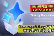 在新機消息不斷湧出之際,三星終於在今天正式對外宣布將在2月26日凌晨兩點(馬來西亞/台灣/香港時間)舉辦新一场 Galaxy Unpacked 新品發布會,屆時 Samsung Galaxy S26 新一代旗艦系列將隆重登場與大家見面! (adsbygoogle = window.adsbygoogle || []).push({}); (閱讀全文...)
