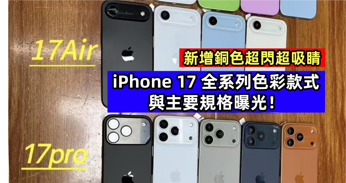 根據網絡最新曝光圖,我們得知 iPhone 17 Pro 系列推出的色彩與標準版以及 Air 款式不同;標準與 Air 款式將主打年輕、活潑色調,而 Pro 款式則更穩重商務,但新增的銅色真的超閃超吸睛。