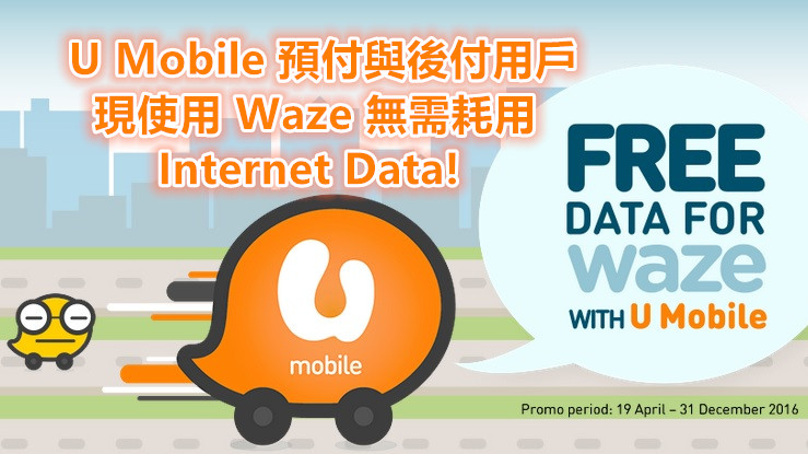 不收費的東西我想誰都想要! U Mobile 當然非常了解這點,這星期他們又開始為用戶提供另一項優惠,U Mobile 預付與後付用戶現可在不耗用自身配套 Data 下免費使用 Waze 導航服務,太棒了!