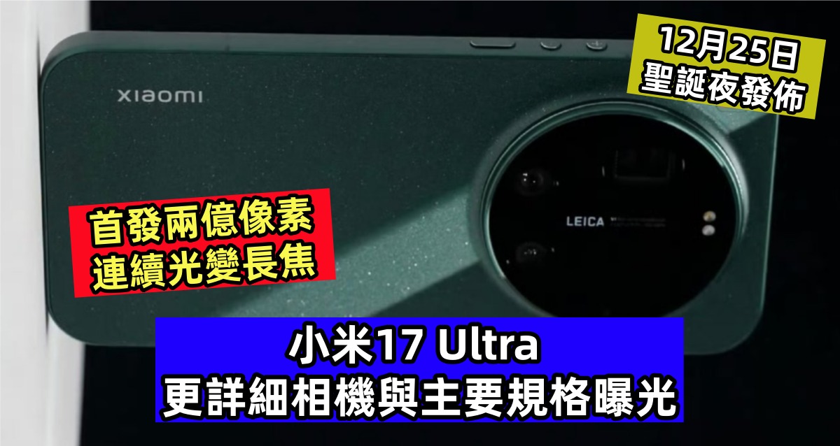 如果說近年手機影像的進化,多半仍停留在「感光元件變大、演算法變聰明」,那麼小米17 Ultra 顯然選擇了一條更難、也更少人願意走的路。隨著發佈時間鎖定在 12 月 25 日聖誕夜,這款新一代 Ultra 的相機細節也逐漸浮上檯面,而真正的技術核心,並不只是那顆 2 億像素長焦,而是背後整套幾乎重新設計的光學結構。