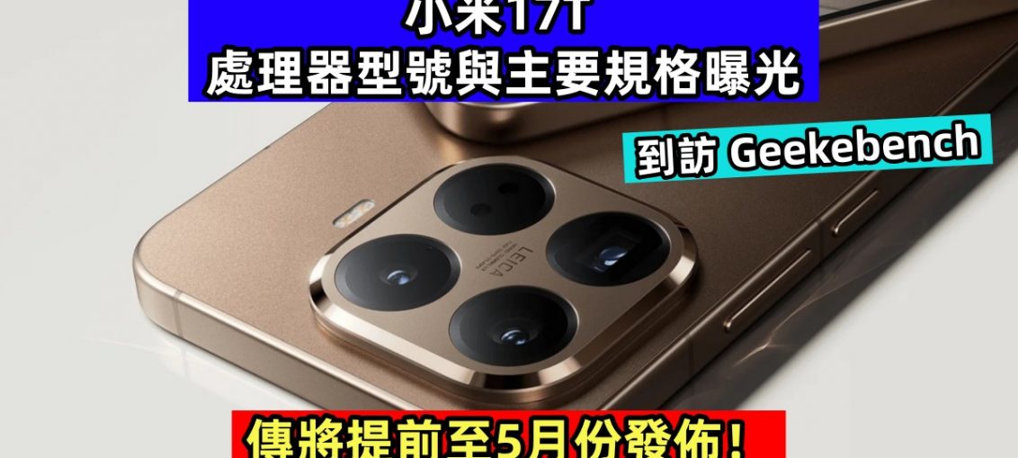 到訪 Geekebench:小米17T 處理器型號與主要規格曝光;傳將提前至5月份發佈! Android 最新消息 by Victor Ng - 27 4 月, 20260 當不少品牌還在按照既定節奏準備下半年新機時,Xiaomi 似乎打算提前出手。根據最新消息,小米17T 有望最快在下個月發佈,比起過去 T 系列通常落在 9 月的時間點,整整提早了約四個月,節奏明顯出現變化。 而隨著發佈時間逼近,這款新機也已經現身 Geekbench,進一步確認部分核心規格。資料顯示,Xiaomi 17T 將搭載 MediaTek Dimensity 8500 處理器,並配備 12GB RAM,同時運行 Android 16。 在 Geekbench AI 測試中,其單精度得分為 1,017、半精度 1,329,量化分數則為 1,124,整體定位明顯落在「次旗艦性能」區間。 根據目前曝光資訊,Xiaomi 17T 將配備一塊約 6.67 吋 OLED 螢幕(預計支援高刷新率),內建 6,500mAh 大電池,並支援 67W 有線快充;記憶體方面提供 12GB RAM,儲存版本預計延續 T 系列常見配置。 影像方面則大概率沿用前代配置,就是配置【5000萬(主) + 1200萬(超廣角) + 5000萬(變焦)】像素三攝鏡頭,依舊支援 2x 光學變焦拍攝,沒有明顯硬體升級。整體來看,是一台以性能與續航為主軸的均衡型次旗艦。 如無意外Xiaomi 17T 今年將提前發佈。至於會不會在5月份登場?這要各位米粉們拭目以待了 ~ 來源 Victor NgA friendly Malaysian who has passion on Tech Gadgets and Mobile Photography. 分享此文: 分享到 X(在新視窗中開啟) X 分享到 Facebook(在新視窗中開啟) Facebook 分享到 WhatsApp(在新視窗中開啟) WhatsApp 分享到 Telegram(在新視窗中開啟) Telegram 相關