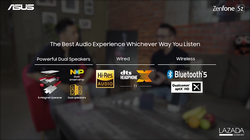 不僅如此Asus Zenfone 5Z還配有高達3300mAh容量的電池來提供足夠的續航力,讓用戶們在使用手機對於電量無後顧之憂!更棒的是,作為一款旗艦手機Asus也沒有忽略揚聲器方面的品質,透過5磁鐵主揚聲器和聽筒副揚聲器形成雙聲道揚聲器之外,還透過與許多軟件合作來提供最棒的音質體驗!