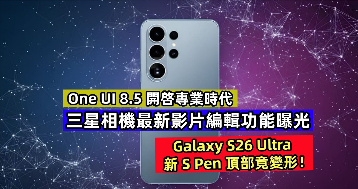 續日前大量 One UI 8.5 測試版上手視頻曝光后,近日網絡上再流出網友在新系統上發掘的新相機與影片編輯功能;同時我們也看到 Galaxy S26 Ultra 新 S Pen 設計的變化;話不多説,大家趕快來瞭解更多吧 ~