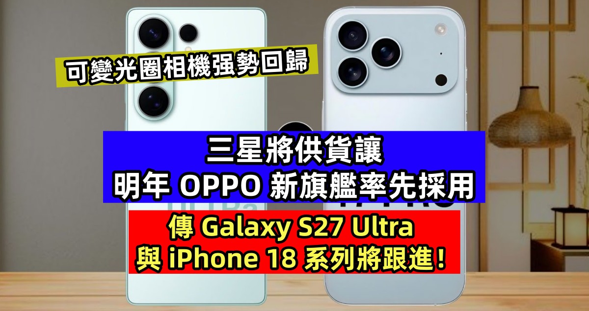 沉寂多年的可變光圈鏡頭(Variable Aperture) 即將重返旗艦舞台!業界消息指出,三星計劃向 OPPO 明年底推出的新旗艦供應可變光圈相機模組,同時三星 Galaxy S27 Ultra 亦在考慮跟進,讓這項技術再度成為手機影像競賽的焦點。