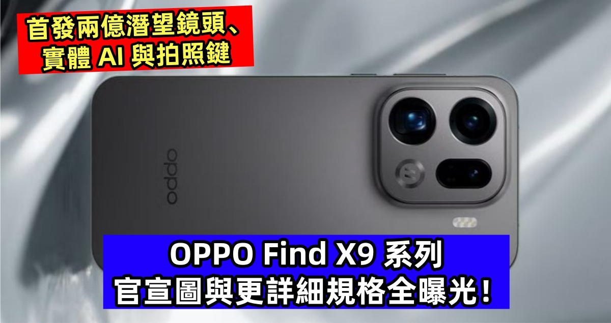 續兩周前官方率先曬出真機后,今天我們終於看到 OPPO Find X9 系列官方宣傳圖與更多規格訊息浮出水面。到底 OPPO 新旗艦的顔值與硬件對比同期即將登場的新機是否有足夠競爭力?大家趕快來瞭解更多吧 ~