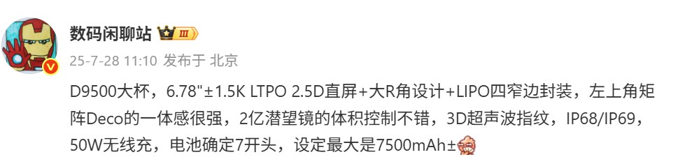 外形大改、電池容量超大:OPPO Find X9 Pro 主要規格曝光;升級配置兩億像素變焦鏡頭! Android 最新消息 by Victor Ng - 29 7 月, 20250 續早前 Ultra 款式的處理器與相機規格外泄后,近日網絡上再流出另一部 OPPO Find X9 Pro 的主要規格!若曝光規格屬實,只能説今年底登場的 OPPO 新旗艦真的超具競爭力的,各位 O 粉趕快來瞭解更多吧 ~ 根據【數碼閑聊站】最新爆料,我們得知 Find X9 Pro 的外觀將迎來大改款!首先這部新機將采用大 R 角機身設計,背面的相機模組也將從用了好幾代的圓形 Oreo 轉換成矩形設計,整體外觀將對標蘋果 iPhone;同時機身繼續支援最高 IP69 防水防塵設計, 據瞭解 Find X9 Pro 正面沿用 6.78寸 1.5K 分辨率 AMOLED 熒幕,將采用 2.5D 直屏設計以及配置 3D 超聲波指紋解鎖技術。值得欣慰的是,這部新旗艦繼續采用 LOPO 四窄邊封裝,意味著其熒幕黑邊將非常窄小,屏佔比相當可口! 拍攝方面,Find X9 Pro 將配置【5000萬(主) + 5000萬(超廣角) + 兩億(變焦)】像素三攝鏡頭,當中變焦鏡頭從前代的 5000萬像素升級至兩億像素,據聞會采用三星 ISOCELL HP5 感光元件,這傳感器擁有 1/1.56寸大底,低光變焦拍攝能力相信會相當出色。 電航力方面,Find X9 Pro 將配置大於 7,000mAh 電池容量搭配 50W 無綫充電技術,目前内部測試機最大電量不超過 7,500mAh,這對比前代的 5,900mAh 電量可説是飛躍式進步! 性能方面,Find X9 Pro 預計會配置聯發科新一代天璣9500 處理器。 如無意外 OPPO Find X9 Pro 將會在今年10月份隆重登場。 在看了以上曝光訊息后,不知大家對相機與電量升級有感的 Find X9 Pro 是否感興趣?還是説您非高通驍龍處理器不買?選擇等待明年初登場的 Find X9 Ultra 呢? 歡迎留言分享意見。 來源1 Victor NgA friendly Malaysian who has passion on Tech Gadgets and Mobile Photography. 分享此文: 按一下即可分享至 X(在新視窗中開啟) X 按一下以分享至 Facebook(在新視窗中開啟) Facebook 分享到 WhatsApp(在新視窗中開啟) WhatsApp 按一下以分享到 Telegram(在新視窗中開啟) Telegram 相關