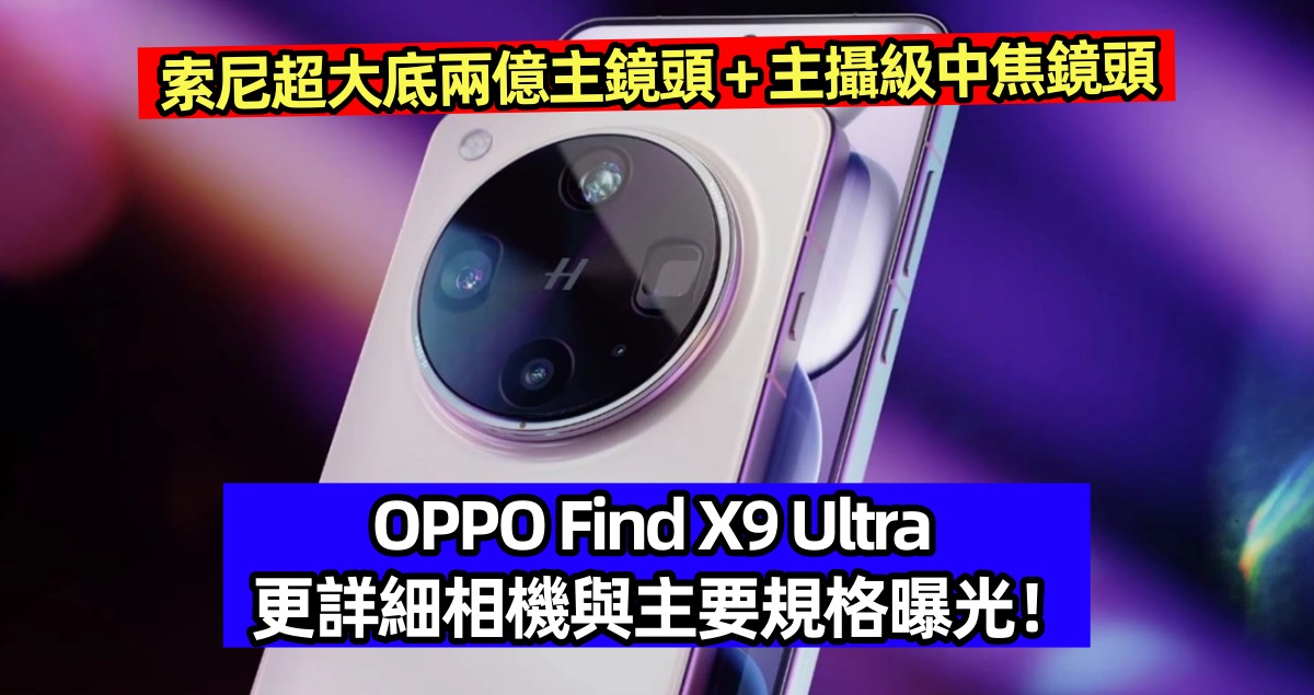 續日前 Find X9 Pro 與標準版 X9 規格訊息曝光后,今天網絡上流出超大杯 OPPO Find X9 Ultra 更詳細相機與主要規格,只能説 Ultra 款式的相機硬件真的殺瘋了。到底其硬件升級有多大?各位 O 粉們趕快來瞭解更多吧 ~