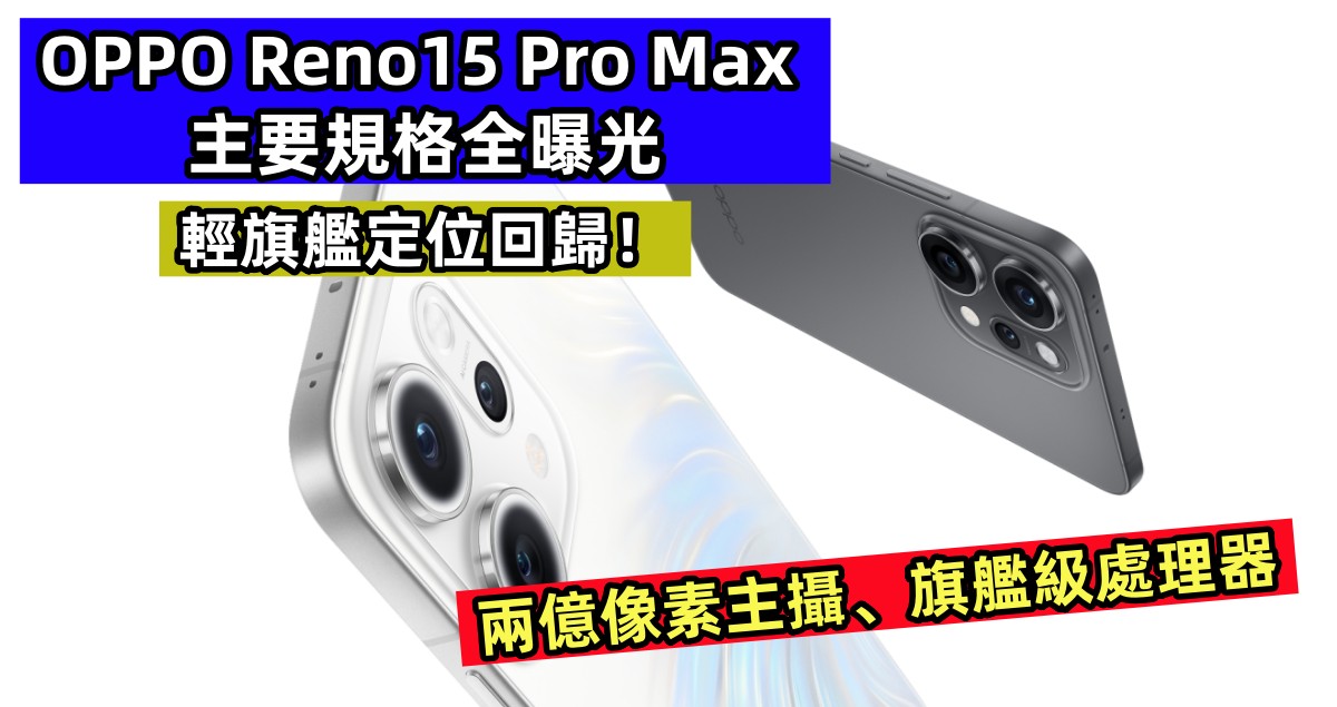 續今年 5 月推出 Reno14 系列後,相隔半年全新一代 Reno15 系列即將登場,據悉這次新型號 OPPO Reno15 Pro Max 將强勢登場。值得注意的是,這是 OPPO 首度在 Reno 系列中採用「Pro Max」命名,顯示其企圖以更高規格挑戰中高階市場。
