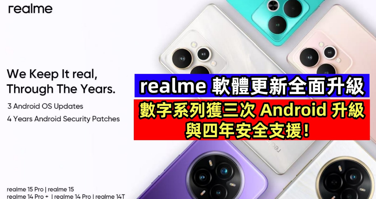 更重要的是,未來所有 「數字 Pro」系列、「數字 T」系列 以及 「數字」系列 新機,均會享有相同的更新承諾,意味著中階 realme 機型的軟體支援將趨於一致化,對長期使用者是一項利好。