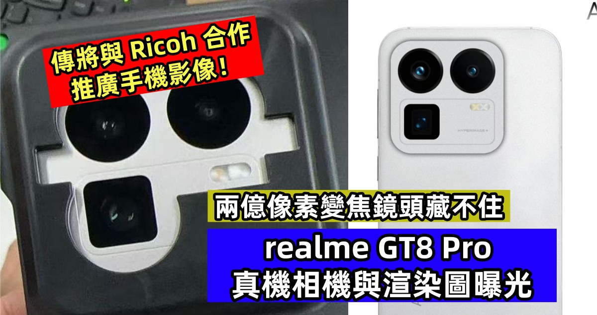 隨著 10 月發表會臨近,realme GT8 系列的爆料愈來愈密集。續早前主要規格曝光后,近日網絡上流出了 realme GT8 Pro 真機相機設計與渲染圖,同時業界也傳出真我將和另一相機廠商合作推廣手機影像!各位真我粉絲們趕快來瞭解更多吧 ~