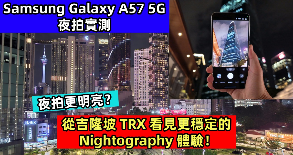 夜晚的 TRX,光線其實沒有你想像中那麼「亮」。近日爲了測試 Samsung Galaxy A57 5G 的夜拍實力,Victor 帶了這部新機到吉隆坡目前最熱門旅游景點之一進行拍攝,想測試它到底能不能拍出比肉眼看到更亮、但又不失真的夜景畫面。