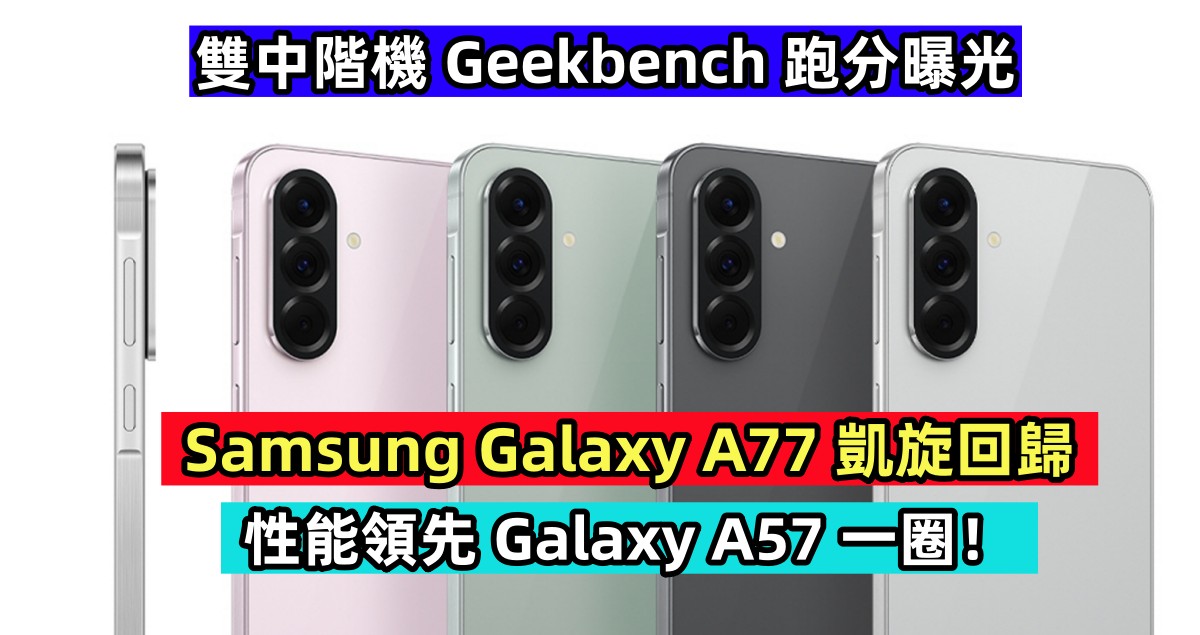 沉寂了三年的 A7x 系列終於重新點燃戰火。隨著 Samsung Galaxy A77(SM-A776B) 現身 Geekbench,三星正式宣告這條高性能中階線路的回歸。而更耐人尋味的是,三星另一款中階王牌 Galaxy A57(SM-A576B) 也同時出現在跑分資料庫中,到底這兩部新中階機的性能差距有多大?大家趕快來瞭解更多吧 ~