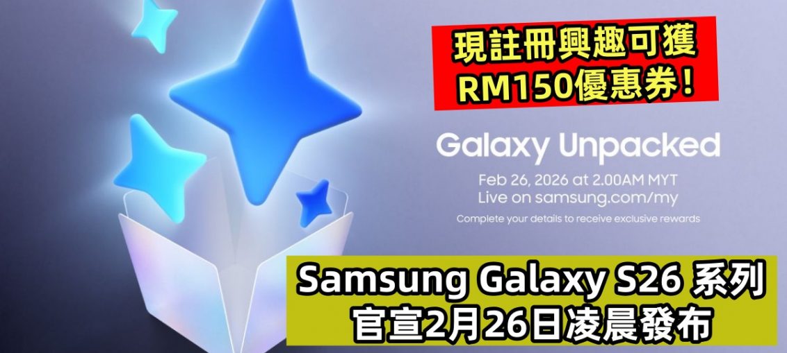 Galaxy AI 再進化:Samsung Galaxy S26 系列官宣2月26日凌晨發布;現註冊興趣可獲RM150優惠券! Android 最新消息 by Victor Ng - 11 2 月, 20260 在新機消息不斷湧出之際,三星終於在今天正式對外宣布將在2月26日凌晨兩點(馬來西亞/台灣/香港時間)舉辦新一场 Galaxy Unpacked 新品發布會,屆時 Samsung Galaxy S26 新一代旗艦系列將隆重登場與大家見面! 根據官方預熱圖,我们得知新一代 Galaxy S26 系列將於 2026 年 2 月 26 日(馬來西亞時間凌晨 2:00) 位於美國舊金山舉辦的 Galaxy Unpacked 發佈會上亮相。 這次發表會的核心主軸非常明確 —— 讓 Galaxy AI 變得更個人化、更自適應、更無縫整合日常生活。 Samsung 表示,這將標誌著 AI 手機時代進入全新階段,從你拿起手機的那一刻開始,就能感受到更流暢、更直覺、更自信的使用體驗。 此外三星馬來西亞也開啟了預熱活動,即日起有興趣購買 Galaxy S26 系列的朋友只需前往官網(點擊這)註冊興趣就能獲得價值 RM150 的電子優惠券以及獲得機會贏取總值超過 RM68,000 的禮物哦 ~ 綜合目前曝光訊息, Galaxy S26 Ultra 邊框很大機率從前代的鈦金屬轉換到鋁(Aluminium);機身設計更纖薄,尺寸僅有 163.6 × 78.1 × 7.9 mm,厚度從前代的 8.2mm 削薄至 7.9mm;重量則降低至 214g。 Galaxy S26 Ultra 正面搭載 6.9寸 2K 分辨率熒幕,其熒幕將升級配置最新 M14 材質,並將效仿摺叠屏手機採用 CoE 去偏光片技術,同時也加入可提模擬隱私保護貼效果的 Flex Magic Pixel 技術;熒幕上方配置康寧 Gorilla Armor2 玻璃。 拍攝方面,Galaxy S26 Ultra 將搭載【兩億(主;) + 5000萬(超廣角) + 1000萬(中焦) + 5000萬(長焦)】像素四攝鏡頭,當中主攝將搭載 F1.4 更大光圈;3x 變焦鏡頭將更換感光元件;至於 5x 長焦鏡頭也搭載 F2.8 更大光圈。 自拍鏡頭方面,儘管相機硬件沒升級,但但焦距從原本的 25mm 改為 23mm 等效焦距。換句話說,用戶在自拍時能捕捉到如主攝鏡頭般更廣畫面,無論是多人合照還是取景背景都能更輕鬆地納入。 性能方面,Samsung Galaxy S26 Ultra 將全面采用高通驍龍8 Elite Gen5 處理器搭配 12GB RAM,當中最高 1TB 容量版本將搭配 16GB RAM。 至於續航力方面,這部新旗艦内置 5000mAh 電量搭配更迅速 60W 閃充技術,據悉能在半小時内為 手機充電 75%;同時無綫充電也將從前代的 15W 提升至 25W。 至於定位稍低的 Samsung Galaxy S26 / S26+ 将分別配上 6.2寸以及 6.7寸屏幕,當中標準版將沿用 FHD+ 分辨率,而 Plus 版本則配置 2K 屏幕。 拍攝方面,Galaxy S26 / S26+ 預計會配置【5000萬(主;OIS)+ 1200萬(超廣角)+ 1000萬(3x變焦;OIS)】三攝鏡頭,如無意外相機規格與前代保持一致,并沒做出任何升級。 性能方面, Galaxy S26 / Galaxy 26+ 將采用雙芯策略,並于美國以及中國市場推出高通驍龍8 Elite Gen5 處理器版,而亞洲 & 歐洲市場則推出 Exynos 2600 處理器版本。 至於電航力方面,Galaxy S26 將配置稍大的 4,300mAh 電量搭配 25W 閃充技術;而 Galaxy S26+ 則内置 4,900mAh 電量搭配 45W 閃充;兩部新機將支援 Qi2 15W 無綫充電技術。 全新一代 Galaxy S26 系列將伴隨 One UI 8.5 新系統于2月26日凌晨隆重登場! 那到底三星還有什麼驚喜仍未揭曉?而 Galaxy AI 這次又會帶來哪項領先的創新功能? 這要大家拭目以待官方發布會消息更新了! 来源 Victor NgA friendly Malaysian who has passion on Tech Gadgets and Mobile Photography. 分享此文: 按一下即可分享至 X(在新視窗中開啟) X 按一下以分享至 Facebook(在新視窗中開啟) Facebook 分享到 WhatsApp(在新視窗中開啟) WhatsApp 按一下以分享到 Telegram(在新視窗中開啟) Telegram 相關