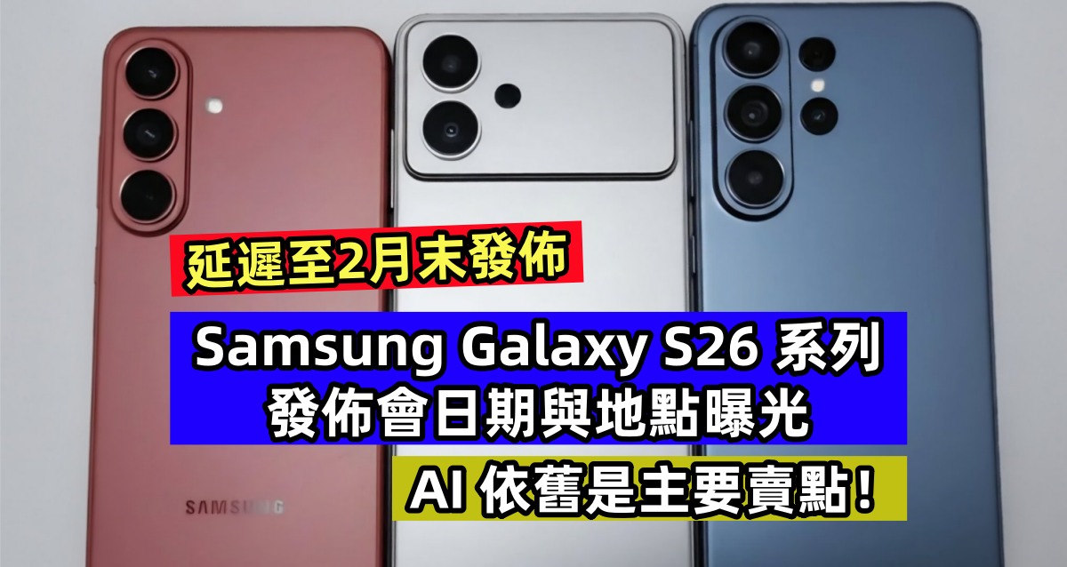 根據韓媒獨家報導,三星電子將於 2026 年 2月25日在美國舊金山(San Francisco) 舉辦新一代旗艦智慧型手機 Galaxy S26 系列(以下簡稱 S26) 的全球發表會「Galaxy Unpacked」。