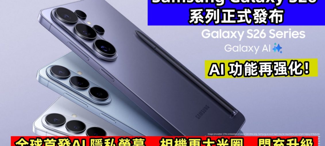全球首發AI 隱私螢幕、相機更大光圈、閃充升級:Samsung Galaxy S26 系列正式發布;AI 功能再强化! Android 最新消息 by Victor Ng - 26 2 月, 202626 2 月, 20260 續去年 Galaxy S25 系列因創新 Galaxy AI 功能加持持續熱賣后,相隔一年,新一代 Samsung Galaxy S26 系列再次强勢登場。有別於前代全系列采用高通驍龍旗艦處理器,今年我們看到 Exynos 2600 也凱旋回歸到 S26 系列上。那到底今年三星能否憑著更强的性能以及 AI 功能再贏一遍? 大家不妨來迅速了解更多吧 ~ 外觀上,Samsung Galaxy S26 系列今年在相機鏡頭方面做出變動,從使用了好幾年的孤島式鏡頭轉換成類似 Galaxy Z Fold7 的橢圓形相機模組設計。 除了鏡頭出現變動外,今年 Galaxy S26 Ultra 的機身圓角弧度比起前代更大,正式與標準版和 Plus 款式看齊;同時其機身厚度也從前代的 8.2mm 再削薄至 7.9mm,同時重量也從前代的 218g 減輕至 214g,携帶性更佳。 機身材質方面,今年 Ultra 款式抛棄了鈦金屬中框,轉而與 Galaxy S26 與 Galaxy S26+ 一起采用增強版的裝甲鋁框 (Enhanced Armor Aluminum)。 玻璃材質方面,今年 Galaxy S26 全系列全都采用了 Gorilla Glass Armor 2 玻璃;機身支援 IP68 防塵防水設計。 色彩方面,今年 Galaxy S26 全系列將在線下市場推出了黑、白、淺藍與紫色四種色彩款式。 至於綫上獨家色彩,今年有粉紅金以及銀色款式。 屏幕方面,Samsung Galaxy S26 系列均搭載了支援 LTPO 以及 Vision Booster 技術以及 120Hz 高刷率的 Dynamic AMOLED 2X 顯示屏,全系列的屏幕峰值亮度依舊維持在 2600nits。 當中最入門的 Galaxy S26 搭載了比前代稍大的 6.3寸 FHD+ 分辨率屏;而 Galaxy S26+ 則維持 6.7寸 QHD+ 分辨率屏幕配置。 至於機皇 Galaxy S26 Ultra 則延用了 6.9吋 2K 解析度 Dynamic AMOLED 2X 螢幕。 這塊顯示幕同樣支援 LTPO 技術;屏幕上方依舊配置 Gorilla Armor 2 玻璃,熒幕依舊擁有抗防光特性。 值得一提的是,Galaxy S26 全系列的屏幕峰值亮度均維持在 2600nits,同時也支援 Vision Booster 技術。 説到亮點,今年 Galaxy S26 Ultra 可是全球首發了【隱私熒幕 / Privacy Display】技術。 不同於傳統防窺貼,這項技術透過像素光線控制,在正面觀看時保持完整畫質,側面視角則自動降低可視性。用戶可自訂在輸入密碼或開啟指定 App 時自動啟動,並可選擇部分或最大隱私模式。 與前代一樣,最頂級的 Galaxy S26 Ultra 依舊支援 S Pen 功能,手寫筆依舊支援 4096 階感壓能力,提供近乎無延遲以及一般原子筆般的手寫體驗。 較爲可惜的是,今年的 S Pen 同樣不支援藍牙連接功能。 拍攝方面,Galaxy S26 Ultra 搭載【兩億(主;F1.4;OIS) + 5000萬(超廣角;F1.9) + 1000萬(中焦;F2.4;OIS) + 5000萬(長焦;F2.9;OIS)】像素四攝鏡頭,當中兩億像素主攝將搭載 F1.4 更大光圈,進光量提升 47%;而 5x 長焦鏡頭也搭載 F2.9 更大光圈,進光量提高 37%,配合更强大的 ISP 以及 Nightography 演算法,其主鏡頭與長焦鏡頭將輸出更明亮清晰的拍攝圖。 至於 Galaxy S26 以及 Galaxy S26+ 則繼續沿用了【5000萬(主;F1.8;OIS) + 1200萬(超廣角;F2.2) + 1000萬(3x變焦;F2.4;OIS)】像素三攝鏡頭組合,當中 5000萬像素主相機採用 ISOCELL GN5 傳感器搭配 OIS 光學防震系統,可透過高像素裁切實現 2x 無損變焦拍攝;而輔助相機除了支援超廣角拍攝外,也能實現 3x 光學變焦以及最遠 30x 數位變焦拍攝。 值得一提的是,Galaxy S26 系列均搭載升級版的 ProVisual Engine 技術進一步提升其整體拍攝素質以及相機連拍速度。 前置鏡頭方面,Galaxy S26 全系列沿用了支援自動對焦的單顆 1,200 萬像素自拍鏡頭,並支援 Super HDR 功能。 錄影方面,Samsung Galaxy S26 全系列均支援最高 8K@30fps 以及 10bits HDR 視頻拍攝, 此外,Galaxy S26 全系列的視頻拍攝也得到強化版 Nightography Video 讓暗光錄影更清晰穩定,Super Steady 新增水平鎖定功能,在劇烈移動場景下仍能維持構圖穩定。 更重要的是,S26 Ultra 成為首款支援 APV 專業影片標準的 Galaxy 裝置,提供高壓縮效率與近乎無損的畫質,對內容創作者而言,這是實質進化。 後製層面,升級版 Photo Assist 可透過自然語言指令修改場景,例如將白天轉為夜景、補齊畫面缺失,甚至替照片人物更換服裝。Creative Studio 則整合創作流程,讓貼圖、桌布與設計素材生成更流暢。 性能方面,今年的 Galaxy S26 系列重回雙芯策略,當中定位最高的 Galaxy S26 Ultra 配置了高通驍龍8 Elite Gen5 處理器搭配 12GB RAM,當中最高 1TB 容量版本將搭配 16GB RAM;其 CPU、GPU 以及 NPU 性能對比前代分別提升了 19%、24% 以及 39%,相當有感。 至於標準版 Galaxy S26 以及 Galaxy S26+ 則在不同地區分別推出高通驍龍以及 Exynos 版本,當中馬來西亞市場發售的可是 Exynos 2600 處理器搭配 12GB RAM。 不得不讚的是,Galaxy S26 Ultra 內置了重新設計的均熱板,官方稱其散熱表現將會更出色。 Galaxy AI:更直覺、更個人化 Now Nudge 能根據情境提供即時建議。例如在對話中提及旅行照片,系統會自動推薦相關相簿內容;當收到會議訊息時,裝置可檢查行事曆衝突。Now Brief 則依據個人情境提供行程與提醒摘要。 Circle to Search with Google 升級為多物件辨識,可同時搜尋畫面中的多個元素。若看到一套喜歡的穿搭,從外套到鞋子都能一次搜尋。 升級版 Bixby 成為更自然的對話型代理,可用口語調整設定或執行指令。同時整合 Gemini 與 Perplexity 等 AI 代理服務,支援跨 App 多步驟任務處理。舉例來說,只需語音要求叫車、確認資訊並完成預訂,系統會在背景完成流程。 這種代理式 AI,正在為 Galaxy 裝置