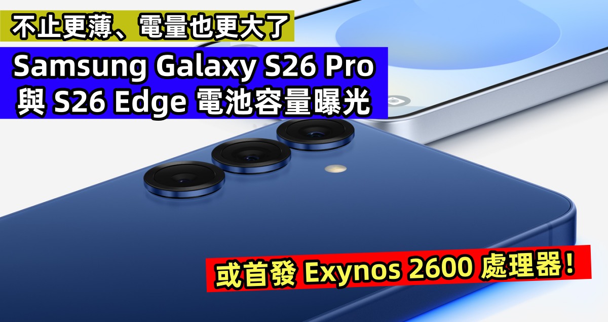 續日前新型號提前被固件外泄后,今天網絡上陸續流出 Samsung Galaxy S26 Pro 以及 Galaxy S26 Edge 更多訊息,當中包括大家關心的電池容量。那到底明年新旗艦的電量有沒有隨著科技進步而增大呢?大家趕快來來瞭解更多吧 ~
