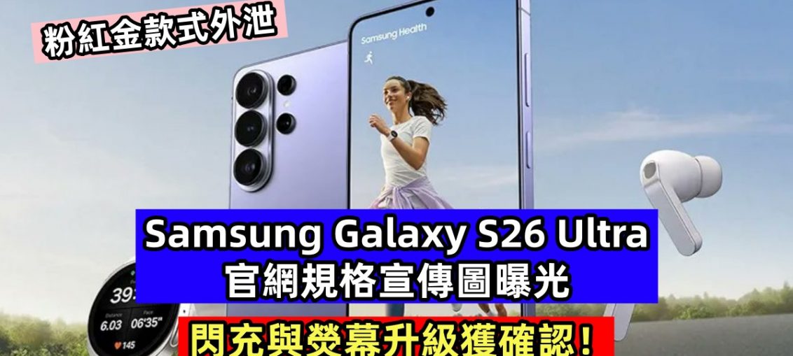 Samsung Galaxy S26 Ultra 官網規格宣傳圖曝光;閃充與熒幕升級獲確認! Android 最新消息 by Victor Ng - 22 2 月, 202622 2 月, 20260 距離 Galaxy Unpacked 只剩倒數時刻,坦白說,今年的保密工作幾乎等於沒有秘密,今天網絡流出了官網規格宣傳圖。到底之前傳聞的規格升級是否準確?大家趕快來先睹爲快吧 ~ 根據最新消息,旗艦核心機型 Samsung Galaxy S26 Ultra 將提供四款常規配色:黑、白、天空藍以及鈷紫色。這組合延續 Samsung 近年高端市場的穩定色系邏輯——黑白維持基本盤,藍與紫負責拉開識別度,不走過度激進路線。 但真正值得注意的,是線上商店限定色。今年兩款專屬顏色為銀色以及粉紅金。從命名來看,兩者都不算突破性創新。 另一邊廂,網絡上也流出了 Galaxy S26 Ultra 官網規格宣傳圖。從上圖我們率先確認新一代機皇的熒幕將支援 AI 隱私熒幕技術。 根據早前曝光訊息,我們得知 Galaxy S26 Ultra 將采用自家開發的 Flex Magic Pixel OLED 技術。透過 AI 即時控制像素排列與發光角度,系統可動態調整可視範圍,同時避免過往防窺膜常見的亮度下降、色偏與畫質損失問題;而用戶可透過系統設定客制隱私熒幕的使用場景,當中包括可局部或全面遮掩熒幕内容。 另一張官網圖也確認了 Galaxy S26 Ultra 的性能、相機以及充電迅速。 毫無驚喜,Galaxy S26 Ultra 搭載【兩億(主;F1.4;OIS) + 5000萬(超廣角) + 1000萬(中焦) + 5000萬(長焦)】像素四攝鏡頭,當中主攝將搭載 F1.4 更大光圈;3x 變焦鏡頭將更換感光元件;至於 5x 長焦鏡頭也搭載 F2.9 更大光圈。 性能方面,Galaxy S26 Ultra 將全面采用高通驍龍8 Elite Gen5 處理器搭配 12GB RAM,當中最高 1TB 容量版本將搭配 16GB RAM;其 CPU、GPU 以及 NPU 性能對比前代分別提升了 19%、24% 以及 39%,相當有感。 至於續航力方面,這部新旗艦内置 5000mAh 電量搭配更迅速 60W 閃充技術,官網截圖確認它在半小時内為 手機充電 75%;而連續播放 31小時視頻能力與 S25 Ultra 持平,電航力表現相信不會有顯著提升。 Samsung Galaxy S26 系列將於 2月 25日 正式發表。在 規格已經不是懸念,顏色也談不上驚喜。真正值得觀察的,或許是 Samsung 如何在細節與體驗層面,讓 S26 Ultra 不只是年度例行更新,而是一款仍然能說服高端用戶的旗艦。 來源1 來源2 Victor NgA friendly Malaysian who has passion on Tech Gadgets and Mobile Photography. 分享此文: 按一下即可分享至 X(在新視窗中開啟) X 按一下以分享至 Facebook(在新視窗中開啟) Facebook 分享到 WhatsApp(在新視窗中開啟) WhatsApp 按一下以分享到 Telegram(在新視窗中開啟) Telegram 相關
