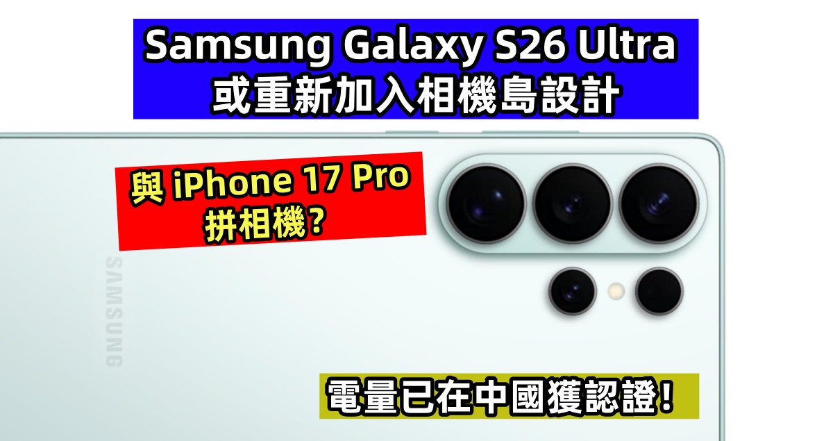 據悉,S26 Ultra 的機身厚度將壓縮至 8mm 以下,如此纖薄的結構若仍維持獨立鏡頭排列,鏡頭模組必然過度凸出,影響觀感與使用。因此,Samsung 選擇重新回到相機島造型,將多顆鏡頭集中排列,以平衡結構與外觀。