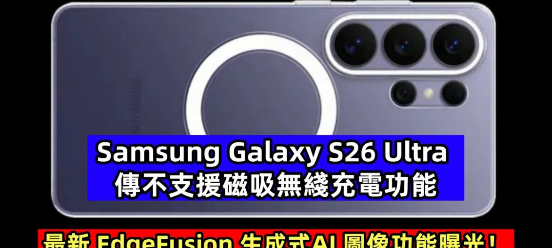 Samsung Galaxy S26 Ultra 傳不支援磁吸無綫充電功能;最新 EdgeFusion 生成式AI 圖像功能曝光! Android 最新消息 by Victor Ng - 5 2 月, 20260 在 Samsung Galaxy S26 Ultra 即將登場之際,外界的關注焦點逐漸變得清晰。續日前官方開啓了相機升級預告后,今天我們得知有關磁吸無綫充電以及最新 AI 功能訊息。話不多説,各位星粉們趕快來瞭解更多吧 ~ I’ve confirmed from independent sources with 100% accuracy that the Galaxy S26 Ultra ultimately does not include built-in magnets inside the device. Magnetic functionality still relies on magnetic cases. — Ice Universe (@UniverseIce) February 5, 2026 首先必須正視的是,市場期待已久的 Qi2 內建磁吸,最終仍未出現在 Galaxy S26 系列身上。根據【i冰宇宙】大神最新爆料,Galaxy S26 Ultra 並未內建磁吸模組,而標準版 S26 與 S26+ 幾乎可以合理推斷同樣缺席。三星依舊選擇以「Qi2 Ready 磁吸保護殼」與新一代 Qi2.2 無線充電配件來承接這個生態,而非直接把磁環塞進機身。 這決定看似與 Galaxy S26 Ultra 的機身設計密切相關。已知 S26 Ultra 厚度從前代的 8.2mm 進一步削薄至 7.9mm,在維持 5,000mAh 電池、強化散熱結構與相機模組堆疊的前提下,Qi2 磁環顯然成為可以被犧牲的一環。三星選擇了更薄的手感與整體結構完整性,而不是為了磁吸妥協機身比例。 Samsung Electronics of South Korea has partnered with local AI company Nota to develop a new AI feature called EdgeFusion. This feature can generate images directly on the device in under one second based on text prompts entered by the user. Samsung plans to integrate EdgeFusion… — Ice Universe (@UniverseIce) February 5, 2026 另一邊廂,【i冰宇宙】也爲我們捎來有關 Galaxy AI 最新消息。 據悉,三星已與韓國本地 AI 公司 Nota 合作,開發一項名為 EdgeFusion 的全新 AI 功能,並計劃直接導入 Galaxy S26 旗艦系列。這項技術的關鍵不在於雲端,而在於「即時、完全在裝置上完成」。透過 EdgeFusion,用戶只需輸入文字提示,手機便能在 不到一秒的時間內直接生成影像,全程不依賴雲端運算。 這代表什麼?代表 Galaxy S26 將不只是「拍得好」,而是開始具備真正即時的生成式影像能力。無論是構圖靈感、影像草稿、視覺概念,甚至是輔助攝影創作,EdgeFusion 都能在本機即時完成,沒有延遲、沒有上傳等待,也不受網路品質限制。這一步,明顯是三星在強化 Galaxy AI 生態時,一次非常有指向性的進化。 綜合目前曝光訊息,定位更高的 Samsung Galaxy S26 Ultra 機身更纖薄,尺寸僅有 163.6 × 78.1 × 7.9 mm,重量則降低至 214g;手機正面搭載 6.9寸 2K 分辨率熒幕,其熒幕將升級配置最新 M14 材質,並將效仿摺叠屏手機採用 CoE 去偏光片技術,同時也加入可提模擬隱私保護貼效果的 Flex Magic Pixel 技術;熒幕上方配置新一代康寧 Gorilla Armor3 玻璃,在抗反光與堅固性方面更上一層樓。 拍攝方面,Galaxy S26 Ultra 將搭載【兩億(主;) + 5000萬(超廣角) + 1200萬(中焦) + 5000萬(長焦)】像素四攝鏡頭,當中主攝將搭載 F1.4 更大光圈;3x 變焦鏡頭將更換感光元件;至於 5x 長焦鏡頭也搭載 F2.9 更大光圈。 自拍鏡頭方面,儘管相機硬件沒升級,但但焦距從原本的 25mm 改為 23mm 等效焦距。換句話說,用戶在自拍時能捕捉到如主攝鏡頭般更廣畫面,無論是多人合照還是取景背景都能更輕鬆地納入。 性能方面,Samsung Galaxy S26 Ultra 將全面采用高通驍龍8 Elite Gen5 處理器搭配 12GB RAM,當中最高 1TB 容量版本將搭配 16GB RAM。 至於續航力方面,這部新旗艦内置 5000mAh 電量搭配更迅速 60W 閃充技術,據悉能在半小時内為 手機充電 75%。 Samsung Galaxy S26 系列預計於 2月 25日 正式發表。 最後,不知大家會否在意手機是否内置磁吸無綫充電功能?歡迎留言分享意見。 來源1 來源2 Victor NgA friendly Malaysian who has passion on Tech Gadgets and Mobile Photography. 分享此文: 按一下即可分享至 X(在新視窗中開啟) X 按一下以分享至 Facebook(在新視窗中開啟) Facebook 分享到 WhatsApp(在新視窗中開啟) WhatsApp 按一下以分享到 Telegram(在新視窗中開啟) Telegram 相關