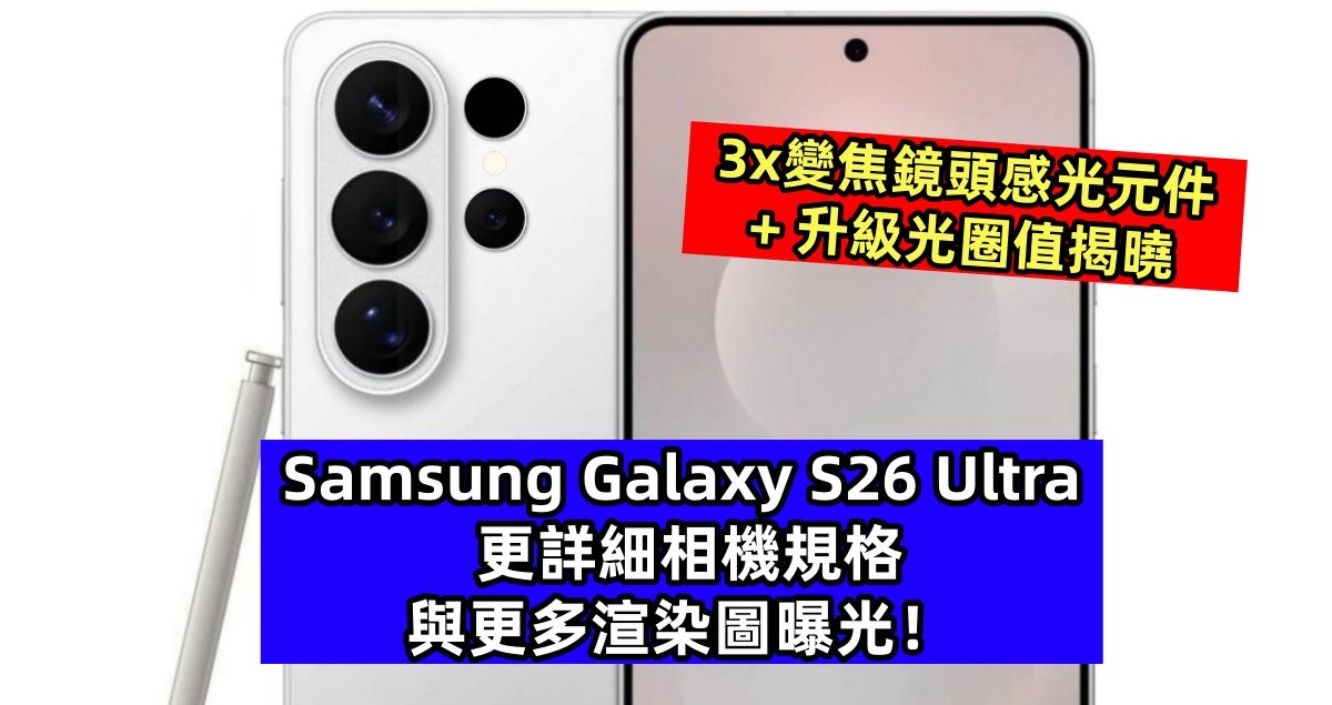 續日前 Galaxy S26 系列 CAD 圖曝光后,今天網絡上再流出 Samsung Galaxy S26 Ultra 更詳細相機規格與更多渲染設計圖。到底新一代三星機皇在外觀設計與相機硬件上的升級幅度有多大?各位星粉們趕快來先睹爲快吧 ~