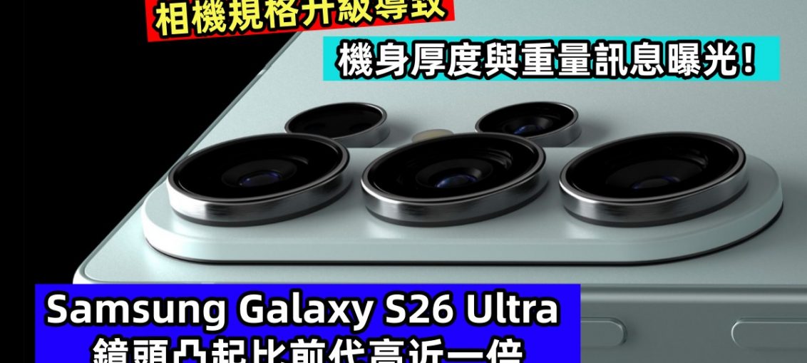 相機規格升級導致:Samsung Galaxy S26 Ultra 鏡頭凸起比前代高近一倍;機身厚度與重量訊息曝光! Android 最新消息 by Victor Ng - 9 9 月, 20250 續早前更詳細相機規格訊息曝光后,今天網絡上再流出更多有關 Samsung Galaxy S26 Ultra 的設計訊息。想知道爲何這次新機皇會換上新相機模組設計嗎?其鏡頭凸起多高?大家趕快來查看最新曝光消息吧 ~ 根據【i冰宇宙】最新爆料,我們得知 Galaxy S26 Ultra 的相機鏡頭凸起竟然高達 4.5mm,要知道機身厚度(不包括鏡頭)僅有 7.9mm,這相機模組厚度已超過機身一半厚度,若仍繼續采用孤島式鏡頭設計的話相機會看起來超凸 & 不美觀,因此三星將 Galaxy Z Fold7 那橢圓形鏡頭模組設計引到 S26 Ultra 上是有原因的,透過多層設計,視覺上鏡頭凸起就不會太突兀了! 據瞭解,這次相機會如此凸起的主要原因是三星為 Galaxy S26 Ultra 的兩億像素主攝鏡頭升級配置 F1.4 超大光圈,要知道 Galaxy S25 Ultra 的鏡頭凸起僅有 2.4mm,Galaxy S26 Ultra 直接將模組厚度提升至 4.5mm,足足加厚了 2.1mm,看來三星真的是被競爭對手的更强相機規格升級給逼急了,不然近期往更輕薄設計路綫駛去的韓國巨頭不會那麽容易妥協。 此外,有消息傳出後年推出的Galaxy S27 Ultra 的主攝將配置更大底的索尼兩億像素新型感光元件,因此今年加厚的相機模組設計只是熱身哦 ~ Oh, I forgot to mention the weight of the Galaxy S26 Ultra, it is 217g. — PhoneArt (@UniverseIce) September 9, 2025 此外, 【i冰宇宙】也宣稱 Galaxy S26 Ultra 的重量為 217g,這對比 S25 Ultra 僅輕了 1g。 值得一提的是,根據早前曝光 CAD 圖資料,Galaxy S26 Ultra 的體積為 163.4 x 77.9 x 7.9mm,這對比 Galaxy S25 Ultra 的 162.8 x 77.6 x 8.2mm 顯得稍長稍寬一些,但機身厚度同時也削薄 0.3mm。 綜合目前曝光訊息,Samsung Galaxy S26 Ultra 將搭載 6.9寸大熒幕,其熒幕將效仿摺叠屏手機採用 CoE 去偏光片技術,同時也加入可提模擬隱私保護貼效果的 Flex Magic Pixel;熒幕上方配置新一代康寧 Gorilla Armor3 玻璃,在抗反光與堅固性方面更上一層樓。 拍攝方面,Galaxy S26 Ultra 將搭載【兩億(主) + 5000萬(超廣角) + 1200萬(中焦) + 5000萬(長焦)】像素四攝鏡頭,當中主攝將搭載 F1.4 更大光圈,5x 長焦鏡頭也搭載 F2.9 更大光圈,至於 3x 中焦鏡頭則更換新型感光元件! 性能方面,Galaxy S26 Ultra 將搭載新一代高通驍龍8 Elite5 處理器搭配 16GB RAM。 電航力方面,目前得知 Galaxy S26 Ultra 將繼續配置 5,000mAh 電池容量,但會搭配更迅速 60W 閃充規格;配合功耗更佳的處理器與 AI 電量優化,相信其續航力會進一步提升。 全新 Samsung Galaxy S26 系列預計會在明年一月份隆重登場! 在看了以上曝光訊息后,不知大家對 Galaxy S26 Ultra 的相機升級與外形改進是否更期待了呢?歡迎留言分享意見。 來源1 Victor NgA friendly Malaysian who has passion on Tech Gadgets and Mobile Photography. 分享此文: 按一下即可分享至 X(在新視窗中開啟) X 按一下以分享至 Facebook(在新視窗中開啟) Facebook 分享到 WhatsApp(在新視窗中開啟) WhatsApp 按一下以分享到 Telegram(在新視窗中開啟) Telegram 相關