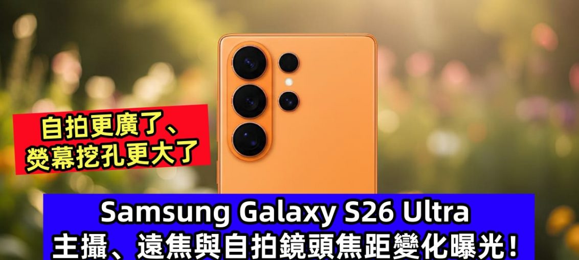 自拍更廣了、熒幕挖孔更大了:Samsung Galaxy S26 Ultra 主攝、遠焦與自拍鏡頭焦距變化曝光! Android 最新消息 by Victor Ng - 10 11 月, 202511 11 月, 20250 除了 Galaxy S26+ 外形設計與主要規格曝光外,今天我們也看到 Samsung Galaxy S26 Ultra 的最新相機訊息外泄,這次曝光的可是主攝、遠焦與自拍鏡頭的焦距變動訊息,各位星粉們趕快來瞭解更多吧 ~ 根據【i冰宇宙】最新爆料,我們得知 Galaxy S26 Ultra 的前置鏡頭開孔尺寸將明顯加大,從 S25 Ultra 的 3.x 毫米擴大到 4 毫米。這是歷代 Ultra 系列中最大的屏幕挖孔尺寸。乍看之下或許會讓人擔心美觀問題,但其實背後原因並非硬體退步——而是三星在「自拍廣度」上下了功夫。 消息指出,S26 Ultra 的前置鏡頭雖然仍維持與前代相同的感光元件與像素配置,但焦距從原本的 25mm 改為 23mm 等效焦距。換句話說,用戶在自拍時能捕捉到如主攝鏡頭般更廣畫面,無論是多人合照還是取景背景都能更輕鬆地納入。這項微調使挖孔必須略為擴大,以容納鏡頭結構的變化,這也解釋了「更大開孔」的真正原因。 除了前置鏡頭,主攝與遠攝部分也有些許變動。爆料指出,主攝焦距從 23mm 微調至 24mm,這將帶來更自然的人像透視與邊緣成像效果;而 5x 潛望遠鏡頭則從 115mm 拉長至 120mm,提供略為更強的遠攝壓縮感與細節層次。 綜合目前曝光訊息,Samsung Galaxy S26 Ultra 將搭載 6.9寸大熒幕,其熒幕將效仿摺叠屏 手機採用 CoE 去偏光片技術,同時也加入可提模擬隱私保護貼效果的 Flex Magic Pixel 技術;熒幕上方配置新一代康寧 Gorilla Armor3 玻璃,在抗反光與堅固性方面更上一層樓。 拍攝方面,Galaxy S26 Ultra 將搭載【兩億(主) + 5000萬(超廣角) + 1200萬(中焦) + 5000萬(長焦)】像素四攝鏡頭,當中主攝將搭載 F1.4 更大光圈,3x 變焦鏡頭將升級配置更大底(1/3寸)感光元件,至於 5x 長焦鏡頭也搭載 F2.9 更大光圈。 續航力方面,據悉 三星正考慮讓新一代 Ultra 配置更大 5400mAh 電量,不過熟悉三星慣性,我們相信更高機率會搭載 5,000mAh 點亮搭配 60W 閃充技術。 根據今天最新曝光訊息,三星有意將 Galaxy S26 系列發佈會提前至1月尾並預計在2月中旬全球發售。 在看了以上曝光訊息后,不知大家對 Galaxy S26 Ultra 這鏡頭焦距變動有何看法?您會否期待獲得更廣角自拍圖呢?歡迎留言分享意見。 來源1 來源2 Victor NgA friendly Malaysian who has passion on Tech Gadgets and Mobile Photography. 分享此文: 按一下即可分享至 X(在新視窗中開啟) X 按一下以分享至 Facebook(在新視窗中開啟) Facebook 分享到 WhatsApp(在新視窗中開啟) WhatsApp 按一下以分享到 Telegram(在新視窗中開啟) Telegram 相關