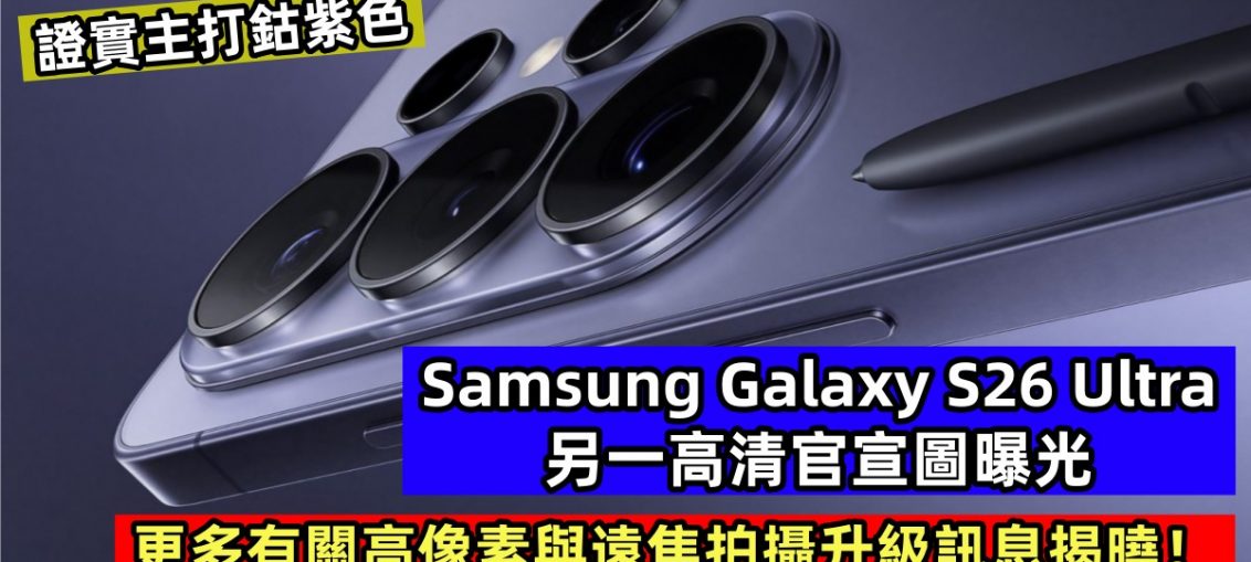 證實主打鈷紫色:Samsung Galaxy S26 Ultra 另一高清官宣圖曝光;更多有關高像素與遠焦拍攝升級訊息揭曉! Android 最新消息 by Victor Ng - 1 2 月, 20260 距離三星 Galaxy S26 系列預期發表時間已不足一個月,相關爆料也正式進入高密度曝光階段。繼日前首批官宣圖流出後,近日網路上再出現一張 Samsung Galaxy S26 Ultra 官方宣傳圖,不僅讓外觀設計更加明朗,也同步揭示了新一代 Ultra 在影像層面的實質升級方向。 這張圖片由知名爆料者 @evleaks 釋出,其準確度一向備受業界肯定。畫面中可見 Galaxy S26 Ultra 採用全新的 Cobalt Violet(鈷紫色) 配色,儘管這紫色不算鮮艷,色調還帶點灰,但整體風格比過往 Ultra 更顯年輕與高級感。 三星同時將 S Pen 納入構圖之中,我們看到紫色款式搭配的是黑色 S Pen;三星也再次強調 Ultra 系列在生產力與創作定位上的不可取代性。 Not Expert RAW’s 24MP mode. It is the 24MP mode of the default camera newly added by Samsung. https://t.co/wjN5cy9dpw — Ice Universe (@UniverseIce) January 31, 2026 另一邊廂,我們從【i冰宇宙】大神的最新爆料得知,Galaxy S26 Ultra 的 5x 長焦鏡頭的錄影能力將迎來明顯升級,其影片最大變焦倍率從前代的 20 倍提升至 25 倍,對於演唱會、遠距拍攝或旅遊紀錄而言,實用性將更高。 此外,三星也被指將在預設相機中加入全新的 24MP 拍攝模式,在 1200萬以及 5000萬像素之間新添選項,注重圖片細節的朋友可自行啓動 2400萬像素,畢竟多一倍像素在細節保留方面更具優勢,相信 Galaxy S26 系列的拍攝水平將比前代來得更出色。 綜合目前曝光訊息,定位更高的 Samsung Galaxy S26 Ultra 機身更纖薄,尺寸僅有 163.6 × 78.1 × 7.9 mm,重量則降低至 214g;手機正面搭載 6.9寸 2K 分辨率熒幕,其熒幕將升級配置最新 M14 材質,並將效仿摺叠屏手機採用 CoE 去偏光片技術,同時也加入可提模擬隱私保護貼效果的 Flex Magic Pixel 技術;熒幕上方配置新一代康寧 Gorilla Armor3 玻璃,在抗反光與堅固性方面更上一層樓。 拍攝方面,Galaxy S26 Ultra 將搭載【兩億(主;) + 5000萬(超廣角) + 1200萬(中焦) + 5000萬(長焦)】像素四攝鏡頭,當中主攝將搭載 F1.4 更大光圈;3x 變焦鏡頭將更換感光元件;至於 5x 長焦鏡頭也搭載 F2.9 更大光圈。 自拍鏡頭方面,儘管相機硬件沒升級,但但焦距從原本的 25mm 改為 23mm 等效焦距。換句話說,用戶在自拍時能捕捉到如主攝鏡頭般更廣畫面,無論是多人合照還是取景背景都能更輕鬆地納入。 性能方面,Galaxy S26 Ultra 將全面采用高通驍龍8 Elite Gen5 處理器搭配 12GB RAM,當中最高 1TB 容量版本將搭配 16GB RAM。 至於續航力方面,這部新旗艦内置 5000mAh 電量搭配更迅速 60W 閃充技術,據悉能在半小時内為 手機充電 75%。 至於發表時程,三星目前仍未正式官宣,但多方消息皆指向 2 月 25 日於美國舊金山舉行 Galaxy Unpacked 發表會。隨著官方級宣傳圖、外觀細節與影像升級方向逐步浮出水面,Galaxy S26 Ultra 幾乎已不再是「傳聞中的產品」,而是進入最後揭曉前的倒數階段。 最後,不知大家在看了以上曝光訊息后,對三星這一部新機皇是否感興趣並打算購買呢?歡迎留言分享意見。 來源1 來源2 Victor NgA friendly Malaysian who has passion on Tech Gadgets and Mobile Photography. 分享此文: 按一下即可分享至 X(在新視窗中開啟) X 按一下以分享至 Facebook(在新視窗中開啟) Facebook 分享到 WhatsApp(在新視窗中開啟) WhatsApp 按一下以分享到 Telegram(在新視窗中開啟) Telegram 相關