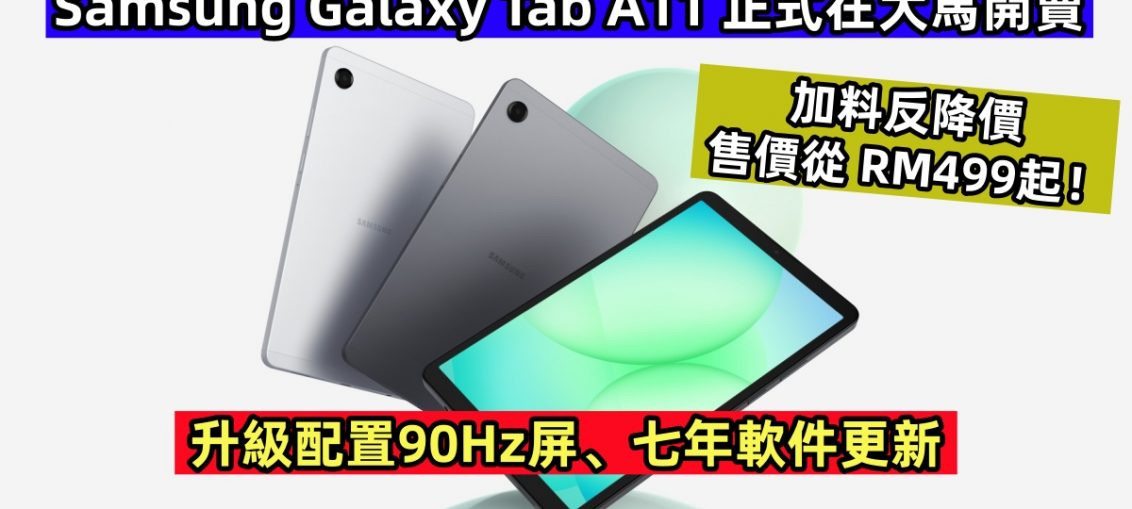 升級配置90Hz屏、七年軟件更新:Samsung Galaxy Tab A11 正式在大馬開賣;加料反降價,售價從 RM499起! Android 最新消息 by Victor Ng - 11 10 月, 202511 10 月, 20250 續推出旗艦級 Galaxy Tab S11 系列平板后,今日正式在馬來西亞推出全新一代入門級平板 Samsung Galaxy Tab A11;它主打輕巧便攜、順暢效能與智慧 AI 體驗,讓更多用戶以實惠價格享受 Galaxy 生態的完整體驗,重點是加料還降價,真的超值推薦,大家趕快來瞭解更多吧 ~ Galaxy Tab A11 整體外觀延續前代設計語言,正面搭載 8.7 吋 TFT LCD 螢幕,解析度為 1340 x 800,這次三星特別將螢幕刷新率升級至 90Hz,帶來更順暢的滑動與視覺體驗,無論是瀏覽網頁、觀看影片或繪圖書寫都更加自然。 機身厚度維持在 8mm,重量約 335g,輕薄便攜,無論放入背包或手拿都不覺負擔。機身同樣內建 5100mAh 電池,可支撐一整天的學習與娛樂體驗,並支援 15W 快充。 Galaxy Tab A11 沿用了聯發科 Helio G99 處理器,主打穩定效能與優異能耗表現,并在馬來西亞市場推出【4GB RAM + 64GB容量】以及【8GB RAM + 128GB容量】兩大版本,同時支援最高 2TB microSD 擴充,可滿足學生、家庭或日常使用需求。 此外,這入門級平板也提供 Wi-Fi 與 4G LTE 兩種版本,靈活對應不同使用場景。 娛樂方面,Tab A11 內建了雙外放喇叭系統,同時也擁有 Dolby Atmos 音效技術,能呈現更立體的聲音層次與臨場感。不論追劇、聽音樂或線上課程,都能享受沉浸式音效體驗。 Galaxy Tab A11 背面配備 800 萬像素主鏡頭,前置則從前代 200萬像素升級為 500 萬像素自拍鏡頭,滿足視訊通話與線上學習需求。 Galaxy Tab A11 最大亮點之一是引入 內建 AI 功能 —— 包含 Gemini 助手,能快速查詢資訊、提供智慧回應,讓入門平板也能體驗旗艦級智慧互動。 這平板也搭載 One UI 7 系統,操作流暢直覺,並內建 Samsung Notes 的 Math Solver,協助學生即時解題與筆記學習;同時它還支援 Samsung Knox 安全防護及可獲得長達七年軟件更新保證,確保裝置長期穩定使用。 Samsung Galaxy Tab A11 配置 Android 15 + One UI 7n 系統 8.7寸 800 x 1340 分辨率的 LCD 屏幕、90Hz高刷率 機身:211 x 124.7 x 8 mm 重量:335g / 337g Mediatek Helio G99 處理器 RAM:4GB / 8GB 64GB / 128GB 内置容量 + 可外加 MicroSD 卡 800 萬像素主攝像鏡頭 500 萬像素前置鏡頭 雙外放喇叭 5100mAh 電量、支援15W快充 Samsung Galaxy Tab A11 提供 灰與銀色兩種色彩款式供選擇,售價最低從 RM499 起,對比前代 RM899 開賣價也降了不少,可説是相當良心! 各版本的官方建議售價如下: Galaxy Tab A11 Wi-Fi (4GB + 64GB) – RM 499 Galaxy Tab A11 Wi-Fi (8GB + 128GB) – RM 599 Galaxy Tab A11 LTE (8GB + 128GB) – RM 699 有興趣購買的朋友可點擊這進入三星官網下單哦 ~ Victor NgA friendly Malaysian who has passion on Tech Gadgets and Mobile Photography. 分享此文: 按一下即可分享至 X(在新視窗中開啟) X 按一下以分享至 Facebook(在新視窗中開啟) Facebook 分享到 WhatsApp(在新視窗中開啟) WhatsApp 按一下以分享到 Telegram(在新視窗中開啟) Telegram 相關
