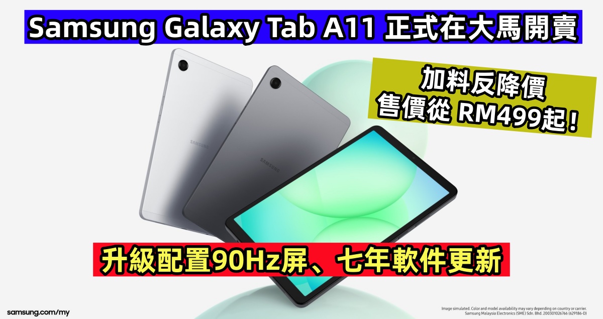 續推出旗艦級 Galaxy Tab S11 系列平板后,今日正式在馬來西亞推出全新一代入門級平板 Samsung Galaxy Tab A11;它主打輕巧便攜、順暢效能與智慧 AI 體驗,讓更多用戶以實惠價格享受 Galaxy 生態的完整體驗,重點是加料還降價,真的超值推薦,大家趕快來瞭解更多吧 ~