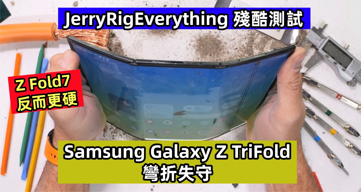 Samsung Galaxy Z TriFold 貴爲三星旗下首款三摺疊手機,原本被視為品牌在摺疊形態上的技術宣言,但在知名 YouTuber JerryRigEverything 一貫「不留情面」的殘酷耐久測試下,這款話題新機卻暴露出與想像不完全一致的現實差距。更耐人尋味的是,對比之下,反而是定位更成熟的 Galaxy Z Fold7 顯得更加穩定可靠。