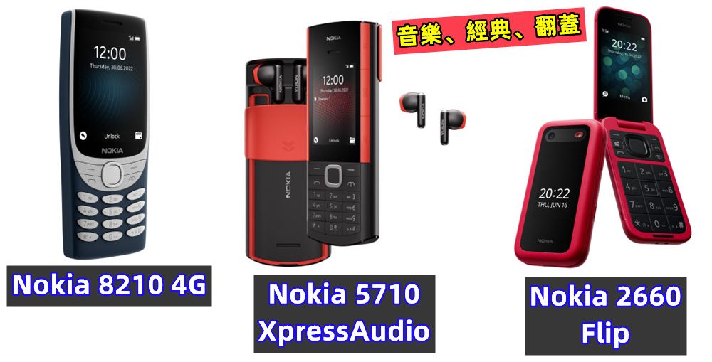經過了較沉靜的上半年,HMD Global 於今天一口氣推出了四部新品,除了入門級平板電腦外,這次更引人注目的可是三部功能機,當中包括復興版的 Nokia 8210 4G 與 Nokia 2660 Flip,以及機身內置 TWS 無線藍牙耳機的 Nokia 5710 Xpress Audio,設計叫人眼前一亮!
