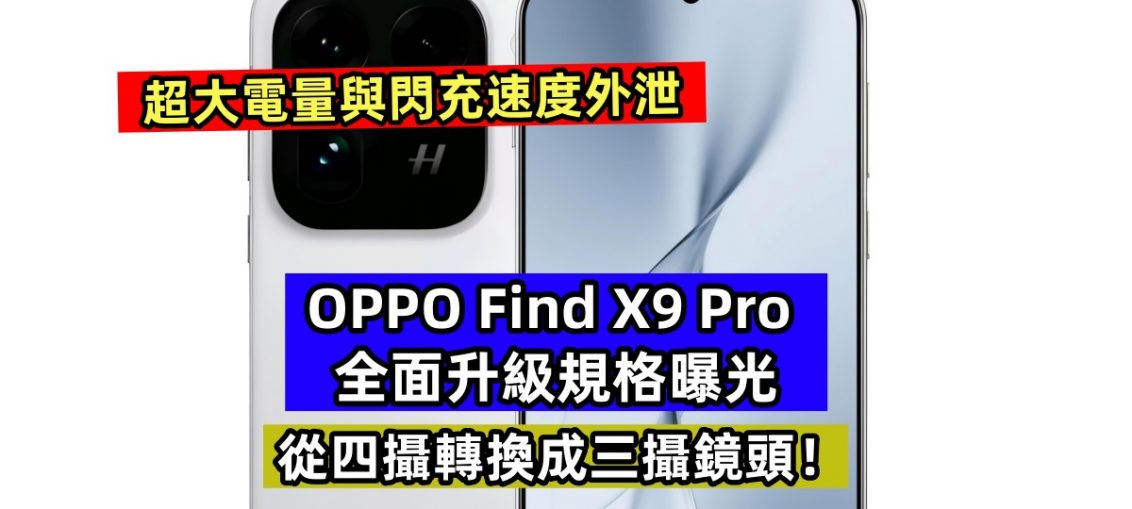 超大電量與閃充速度外泄:OPPO Find X9 Pro 全面升級規格曝光;從四攝轉換成三攝鏡頭! Android 最新消息 by Victor Ng - 23 8 月, 202523 8 月, 20250 隨著 2025 第四季度逐漸逼近,近日全新一代 OPPO Find X9 Pro 的新機訊息也在不斷浮出水面,這次我們得到的曝光訊息是新旗艦的完整規格訊息,到底其規格升級有多大?各位 O 粉們趕快來圍觀吧 ~ (adsbygoogle = window.adsbygoogle || []).push({}); 54565