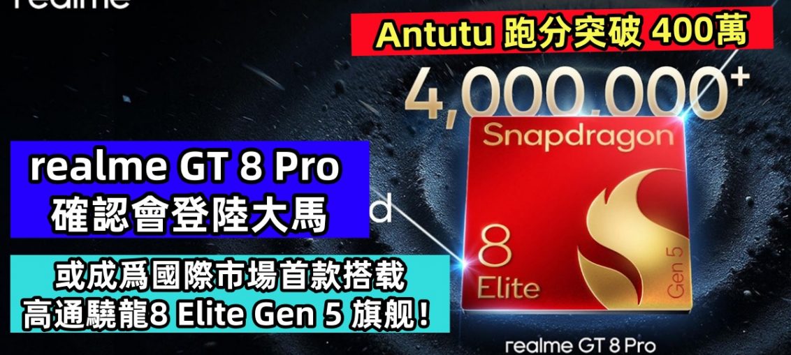 Antutu 跑分突破 400萬:realme GT8 Pro 確認會登陸大馬;或成爲國際市場首款搭载高通驍龍8 Elite Gen 5 旗舰! Android 最新消息 by Victor Ng - 25 9 月, 202525 9 月, 20250 续去年真我GT 7 Pro 成为国际市场首批开卖并采用高通 Snapdragon 8 Elite 的旗舰后,今年真我同样动作迅速,官方确认全新一代 realme GT8 Pro 很快就会登陆马来西亚市场!这款旗舰机不仅是 realme 史上性能最强的作品,更有望成为大马首批搭载高通驍龍8 Elite Gen 5 的顶尖旗舰。 (adsbygoogle = window.adsbygoogle || []).push({}); 55276