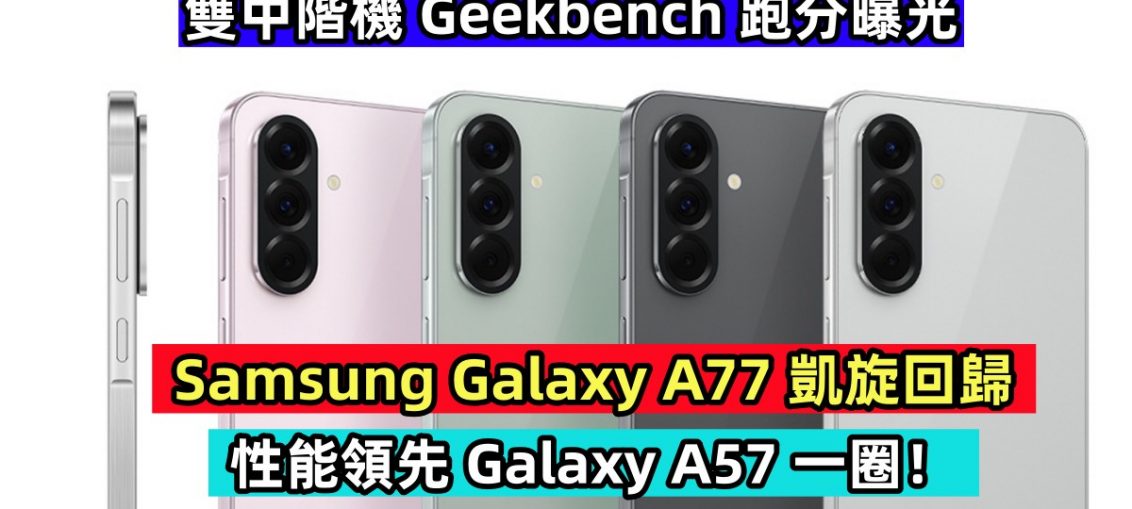 雙中階機 Geekbench 跑分曝光:Samsung Galaxy A77 凱旋回歸;性能領先 Galaxy A57 一圈! Android 最新消息 by Victor Ng - 22 11 月, 202522 11 月, 20250 沉寂了三年的 A7x 系列終於重新點燃戰火。隨著 Samsung Galaxy A77(SM-A776B) 現身 Geekbench,三星正式宣告這條高性能中階線路的回歸。而更耐人尋味的是,三星另一款中階王牌 Galaxy A57(SM-A576B) 也同時出現在跑分資料庫中,到底這兩部新中階機的性能差距有多大?大家趕快來瞭解更多吧 ~ (adsbygoogle = window.adsbygoogle || []).push({}); 56077