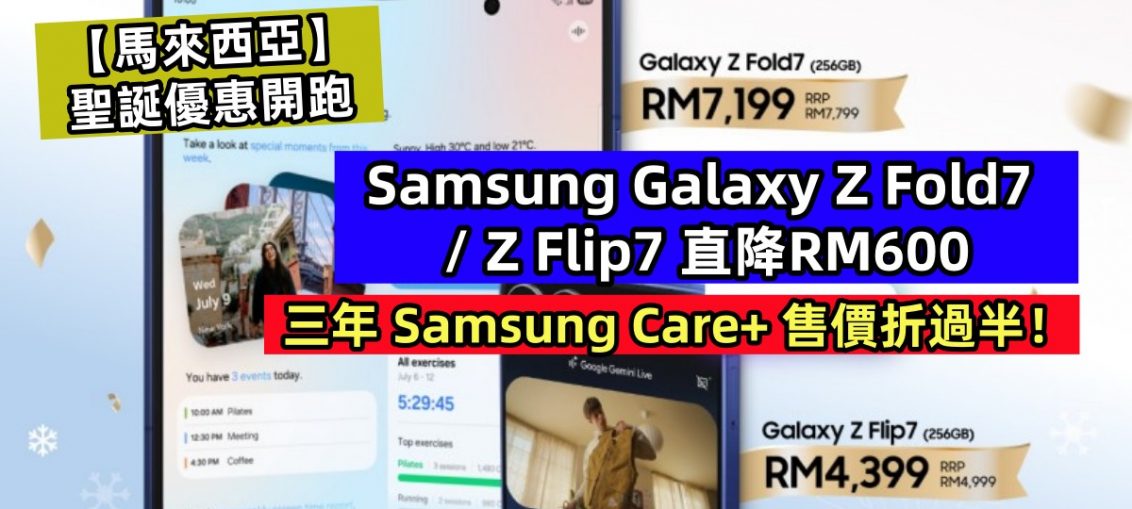 【馬來西亞】聖誕優惠開跑:Samsung Galaxy Z Fold7 / Z Flip7 直降RM600;三年 Samsung Care+ 售價折過半! Android 最新消息 by Victor Ng - 25 11 月, 20250 今年伴侶的聖誕節禮物您是不是還沒想到要買什麽呢?或許可看看三星這最新優惠。若您的另一半一直很想要一部新手機,那今年最新推出的 Samsung Galaxy Z Fold7 以及 Galaxy Z Flip7 或許該列入清單,大家趕快來查看其最新聖誕優惠吧 ~ (adsbygoogle = window.adsbygoogle || []).push({}); 56178