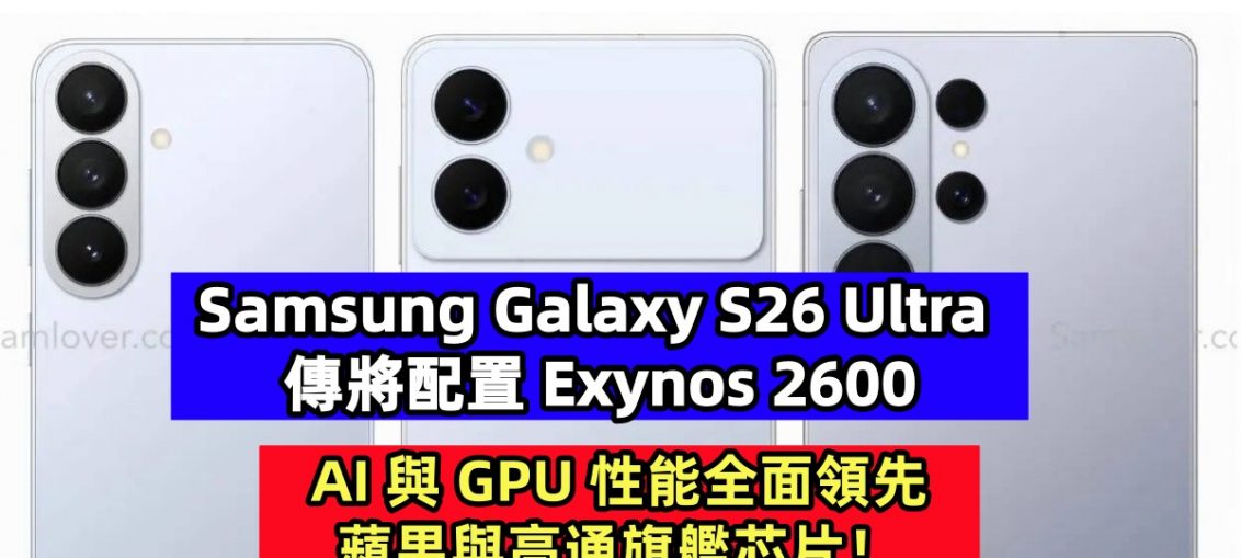 不止標準版 / Plus:有傳 Samsung Galaxy S26 Ultra 也將配置 Exynos 2600;AI 與 GPU 性能全面領先蘋果與高通旗艦芯片! Android 最新消息 by Victor Ng - 20 10 月, 20250 三星電子似乎正準備在明年以一場「技術復仇」正式重返旗艦晶片戰場。根據多方產業消息,Samsung Galaxy S26 全系列將搭載自家開發的 Exynos 2600 處理器,包括往年專屬 Qualcomm 晶片的 Ultra 機型也將納入其中。這將是自 2022 年後,三星睽違四年再度於旗艦系列全面採用自研晶片。 (adsbygoogle = window.adsbygoogle || []).push({}); 55683