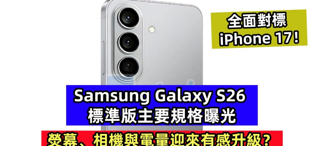 熒幕、相機與電量迎來有感升級?Samsung Galaxy S26 標準版主要規格曝光;全面對標 iPhone 17! Android 最新消息 by Victor Ng - 2 11 月, 20250 眼看蘋果 iPhone 17 因規格大升級而贏下計價口碑與銷售成績,三星這邊廂說沒壓力肯定是騙人的;近期業界傳出 Samsung Galaxy S26 系列爲了重新調整硬件規格而延後發佈訊息,看來無風不起浪,因爲網絡最新曝光訊息顯示,標準版 Galaxy S26 將迎來近年來最有感升級,大家趕快來八一八吧 ~ (adsbygoogle = window.adsbygoogle || []).push({}); 55820