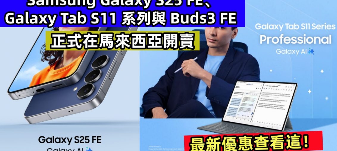 最新優惠查看這:Samsung Galaxy S25 FE、Galaxy Tab S11 系列與 Buds3 FE 正式在馬來西亞開賣! Android 最新消息 by Victor Ng - 28 9 月, 202528 9 月, 20250 正無色想入手新手機、平板以及無綫藍牙耳機?趕快來查看新鮮滾熱辣在馬來西亞市場上架的全新一代 Samsung Galaxy S25 FE、Galaxy Tab S11 系列 以及 Galaxy Buds3 FE 吧!這三款新品不僅承襲了 Galaxy 旗艦的核心體驗,更透過 Galaxy AI 打造更智慧、更流暢的互聯生態,全面提升生產力、創造力與娛樂體驗。 (adsbygoogle = window.adsbygoogle || []).push({}); 全新 Samsung Galaxy S25 FE 主打「For Everything」的全能定位,將旗艦級設計與功能帶到更親民的價位。透過 One UI 8 搭載 Galaxy AI,用戶可隨時運用 Circle to Search、Gemini Live、Generative Edit、Instant Slow-mo 等多模態 AI 工具,從搜尋到影像創作都更加直覺高效。 在硬體規格上,Galaxy S25 FE