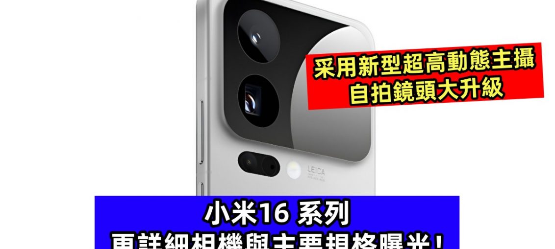 采用新型超高動態主攝、自拍鏡頭大升級:小米16 系列更詳細相機與主要規格曝光! Android 最新消息 by Victor Ng - 13 8 月, 202513 8 月, 20250 不知不覺 2025年已踏入8月份,早前業界曾傳出小米有意在9月底率先推出全新小米16 系列,若屬實的話那距離發佈真的不遠了!近日網絡上再流出新旗艦的相機與主要規格訊息,看似規格升級挺有感的,各位米粉們趕快來瞭解更多吧 ! (adsbygoogle = window.adsbygoogle || []).push({}); 54449