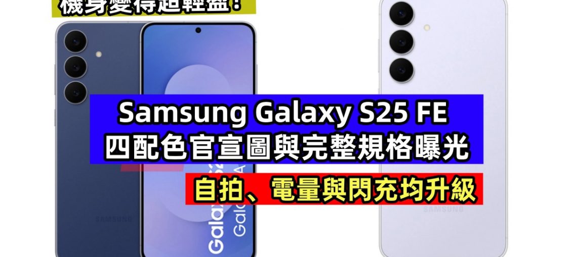 自拍、電量與閃充均升級:Samsung Galaxy S25 FE 四配色官宣圖與完整規格曝光;機身變得超輕盈! Uncategorized by Victor Ng - 14 8 月, 20250 續日前數張官宣圖被英國 Tesco 搶先曝光后,今天網絡上直接流出 Samsung Galaxy S25 FE 四款配色的高清官網宣傳圖與主要規格。話不多説,大家趕快來先睹爲快吧 (adsbygoogle = window.adsbygoogle || []).push({}); 54472